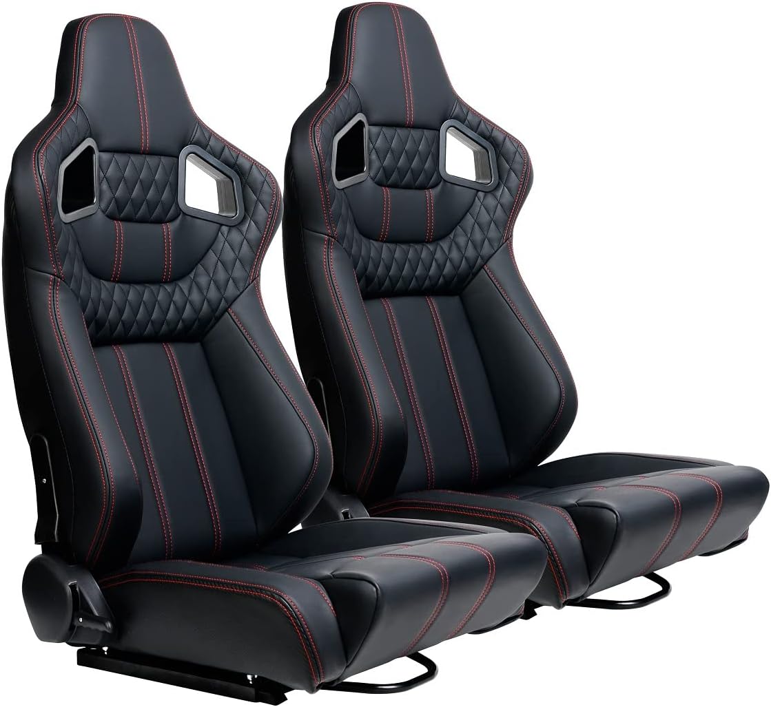 2 Pieces Universal Racing Seats with PVC Leather, Steel Frame, 1 Pair Racing Bucket Seats for Driver and Passenger Side, Black